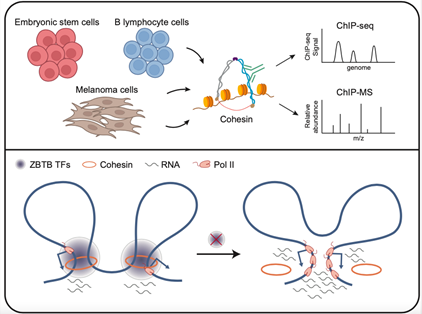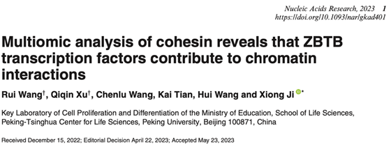 2023年6月2日,PA视讯游戏平台官网、北大-清华生命科学联合中心季雄课题组在Nucleic Acids Research杂志上在线发表了题为“Multiomic analysis of cohesin reveals that ZBTB transcription factors contribute to chromatin interactions”的研究论文,文中对染色质结构起着关键性调控作用的Cohesin蛋白复合体进行了蛋白质组学分析,并确定了与Cohesin复合体相关的转录因子、RNA结合蛋白和染色质调节因子。随后对蛋白质组结果进行验证和进一步研究,通过蛋白质瞬时降解系统,揭示了ZBTB转录因子蛋白家族可以调控Cohesin在染色质上的结合,并且可以调控三维染色质之间的相互作用和转录抑制,为研究染色质结构调控机理研究提供了新的线索。