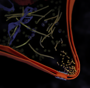 图1. 粒细胞核分叶的核膜(橙)及中间纤维(黄)