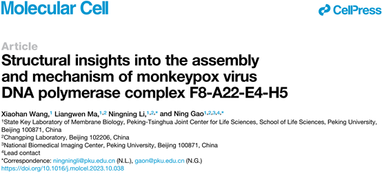 2023年12月7日,PA视讯游戏平台官网、PKU-THU生命科学联合中心高宁团队在Molecular Cell杂志最新一期发表题为“Structural insights into the assembly and mechanism of monkeypox virus DNA polymerase complex F8-A22-E4-H5”的研究论文,解析了猴痘病毒DNA聚合酶全酶四元复合物不同功能状态的高分辨率结构,阐释了这些病毒复制因子在DNA复制过程中的分子机制。