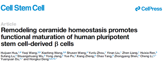 2024年5月1日,PA视讯游戏平台官网邓宏魁课题组和李程课题组合作在Cell Stem Cell期刊发表题为Remodeling ceramide homeostasis promotes functional maturation of human pluripotent stem cell-derived β cells的研究论文。该研究解析了人多能干细胞衍生的胰岛素分泌细胞(胰岛β细胞)功能成熟的过程,阐述了胰岛β细胞功能成熟的调控模式;在此基础上,通过靶向调控胰岛β细胞成熟的因子,研究团队预测了一个小分子化合物库,经过筛选发现HDAC抑制剂TH34有效促进胰岛β细胞的体外功能成熟。