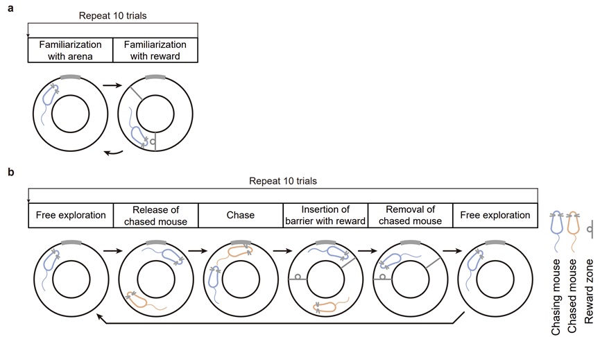 动物的认知地图有助于动物在环境中形成对自己位置的空间表征,在这一过程中,大脑海马中的位置细胞[1]和内嗅皮层的网格细胞[2]发挥着重要作用。对社交同伴空间位置的表征可能积极参与到动物社交的活动过程,之前已有研究在大鼠[3]和蝙蝠[4]的海马中发现了能表征社交同伴的位置信息的社交位置细胞,然而这种对同伴的位置表征是基于自我为中心坐标系还是非自我为中心坐标系尚不清楚,此外,这些细胞在不同情景下的特征也尚不明确。