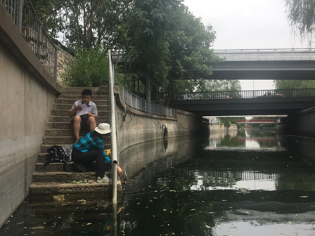 论文通讯作者姚蒙(右下)和志愿者(左上)在元大都进行水质指标测定
