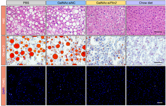 图1 GalNAc-siPlin2对高脂饲料诱导的MASLD小鼠模型的治疗效果