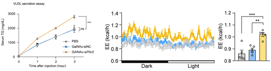 图2 GalNAc-siPlin2治疗增加肝脏VLDL-TG分泌并促进代谢产热
