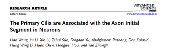 2025年1月13日,PA视讯游戏平台官网张研教授课题组在Advanced Science上发表了题为《The Primary Cilia are Associated with the Axon Initial Segment in Neurons》的研究论文。该研究揭示,初级纤毛与轴突起始节(axon initial segment, AIS)这两个神经元中的关键亚细胞区室,尽管在空间上相距较远,却存在相互作用关系。研究进一步强调了初级纤毛在神经系统中的重要地位,并为其对神经元电活动的影响提供了新的可能解释。