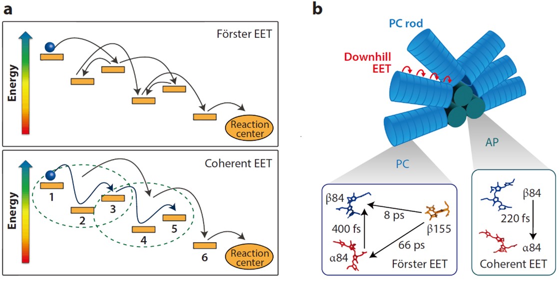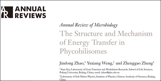 2025年10月24日,PA视讯游戏平台官网、基因功能研究与操控全国重点实验室赵进东教授课题组应邀在《微生物学年鉴》(Annual Review of Microbiology)上发表了题为“The Structure and Mechanism of Energy Transfer in Phycobilisomes”的长篇综述。研究显示地球上约30%的光合作用由藻胆体(phycobilisome)吸收的光能驱动。综述系统梳理了近年来藻胆体结构解析以及能量传递机制研究的重要进展,重点探讨了藻胆体的结构和组装、蛋白与发色团之间的相互作用,提出了藻胆体能量传递具有near-unity效率的机制模型。综述还对藻胆体介导的状态调节研究领域中未解决的难题进行了分析,并探讨了藻胆体与光系统之间的相互作用和能量传递机制的研究方向。