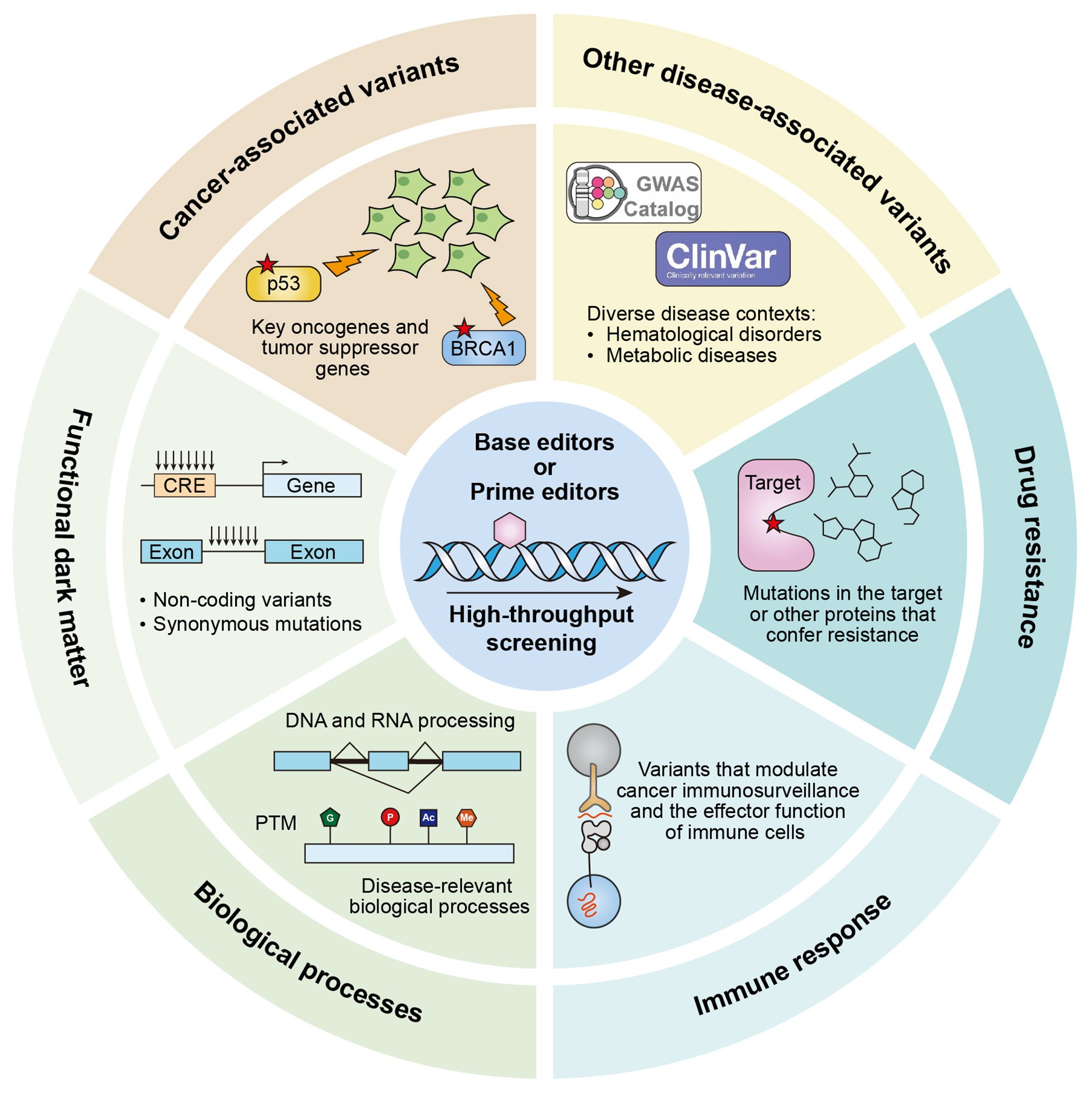 图二 碱基编辑器与引导编辑器筛选在系统解析功能性突变中的应用
