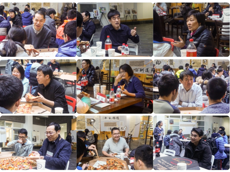 学院为师生准备了美味的pizza,老师与学生面对面边吃边聊,自然和谐,欢聚一堂,其乐融融。导师们纷纷表示,将会陪伴学生共同成长!同学们参会后对于老师和学术科研有了新的认识,他们说:老师比想象中更加平易近人,不仅可以做学业上的老师,其人格魅力更是潜移默化影响着我们!