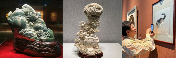 玉、石、金、银等材料在大师们精雕细琢下成为了一件件集美观与实用价值为一体、巧夺天工的工艺品。气势恢宏的《岱岳奇观》体现了中华民族勇攀高峰的品质;《白玉五行塔》的八根链条环环相扣,一气呵成,让人叹服;《硕果累累》寿山石雕中的荔枝就像新鲜采摘的一样诱人……馆内还有快速剪影民间艺术互动、唱戏听曲、舞龙舞狮情景展示,这些极大拉近了我们与非物质文化遗产的距离。今天中国工艺美术馆的参观学习,让我体会到了祖国能工巧匠的勤劳和智慧,中华传统文化的博大精深,以及中国人民对美好生活的向往和追求!