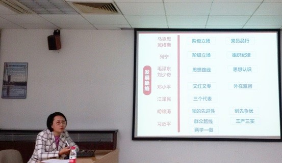 张婧老师在专题报告中系统介绍了关于党性修养的经典论述,从历史发展的角度,为大家讲解了“党性”的含义及其发展变化。同时指出,在历史的长河中,尽管党性的内涵在不断发展变化,但各个时期对党性的要求却有着始终不变的原则,即党员应有的政治立场、组织纪律和道德修养。在政治、经济、文化飞速发展的今天,共产党员应该坚定政治立场,遵守组织纪律,培养道德修养,做“讲政治、有信念,讲规矩、有纪律,讲道德、有品行,讲奉献、有作为”的新时期合格党员。