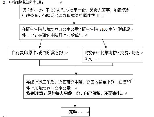 1.英文成绩单在各院系办理,由各院系负责人签字即可,不需要到研究生院盖章,各院系收取费用。
