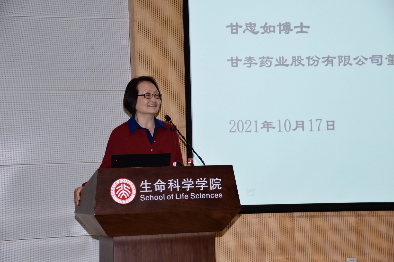 讲座由吴虹院长主持,她简单介绍了甘忠如博士的成长经历,从北大的刻苦学习、留校工作到国外留学研究,后来回国创业,乘着时代的浪潮创建自己的事业,带领团队研发了中国自己的重组胰岛素。吴虹院长表示,甘博士创业过程中的坚毅与刻苦值得在座的每一位同学学习,并在未来的人生中体会这种宝贵的创业精神。