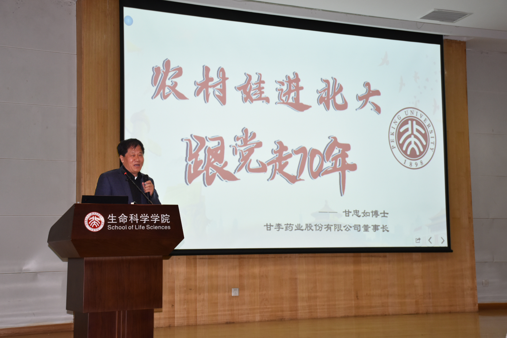10月17日下午,第83期“展望事业,探讨人生”讲座在金光生命科学大楼101报告厅顺利举行。本次讲座邀请到著名科学家、企业家、北大优秀校友、甘李药业股份有限公司董事长、“中国胰岛素之父”甘忠如博士,与师生们进行了深入的交流,让同学们受益匪浅。生命科学、医学、化学等专业约160名师生聆听了本次讲座。