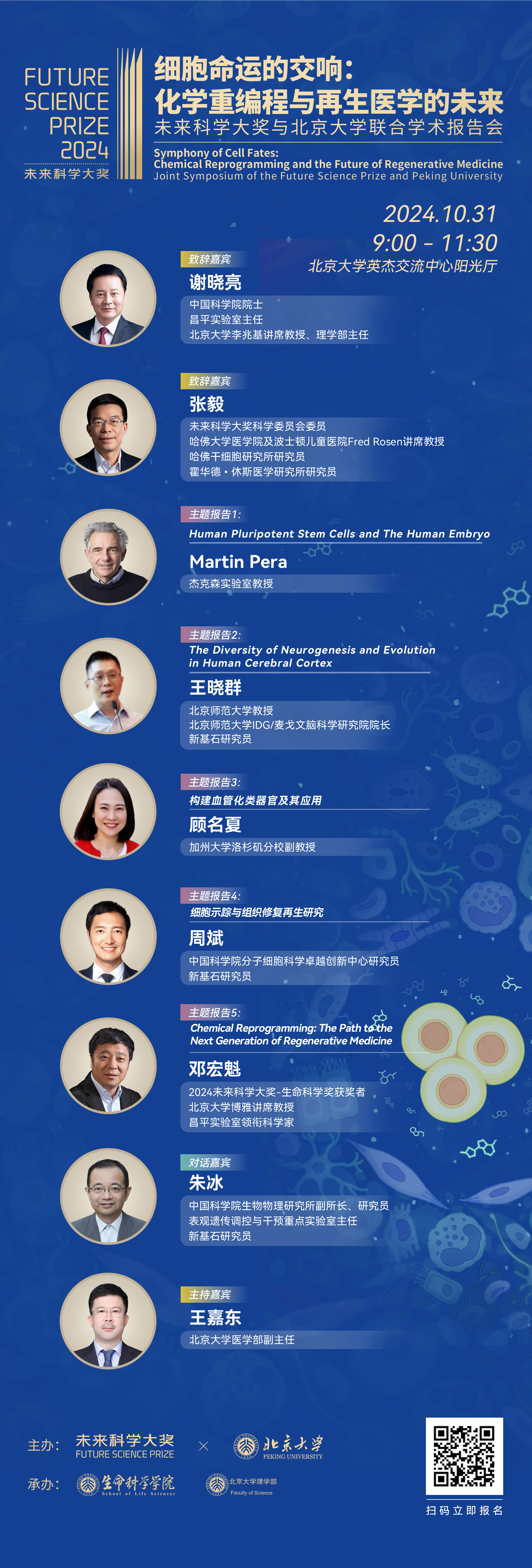 为分享科学发展前沿成果,推动学科交叉与学术创新,PA视讯游戏平台官网将与未来科学大奖联合举办学术报告会——细胞命运的交响:化学重编程与再生医学的未来。欢迎全校师生参与交流!