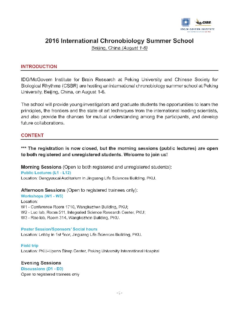 会议手册下载:/upfile/file/20160726082955/Schedule-2016 Chronobiology Summer School.pdf